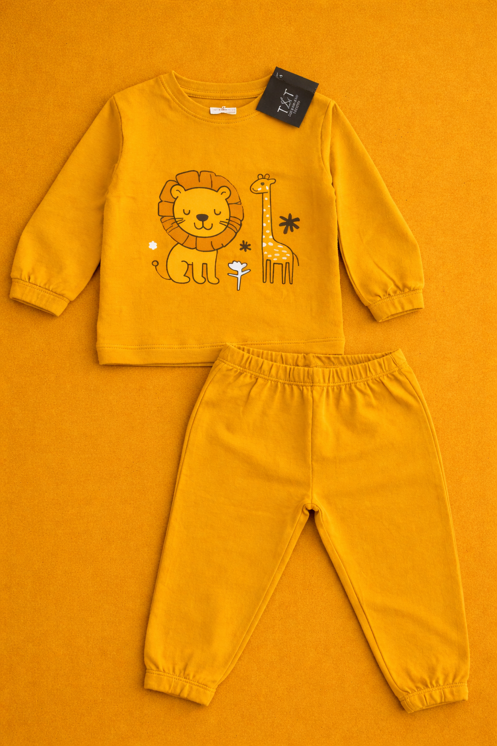 Bring charm and comfort to your child’s bedtime with this playful pyjama set featuring a cute lion, elephant, and giraffe print.