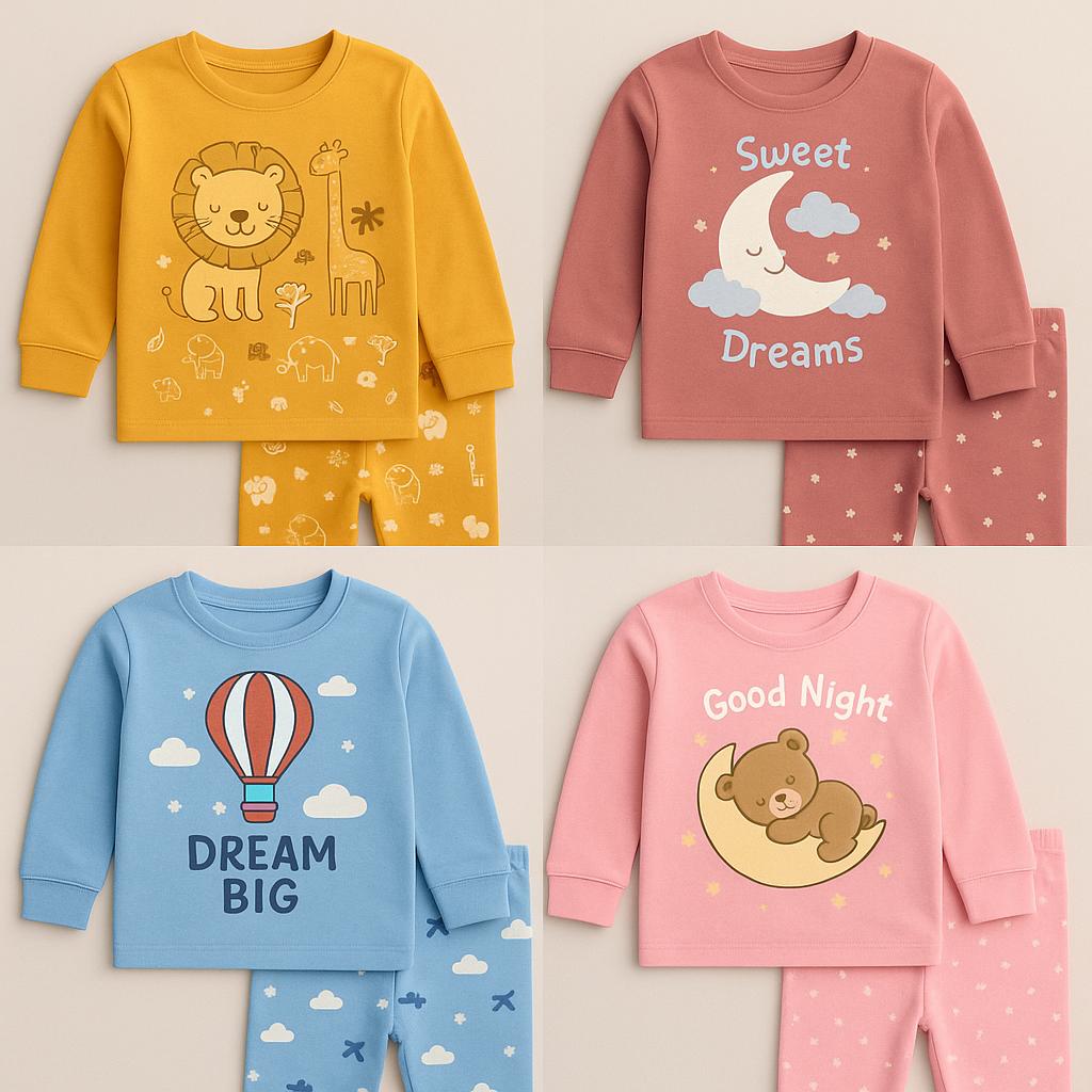 Designed with buttery-soft fabric, stretchable fit, and skin-friendly finishing — made to give your child the sweetest sleep.